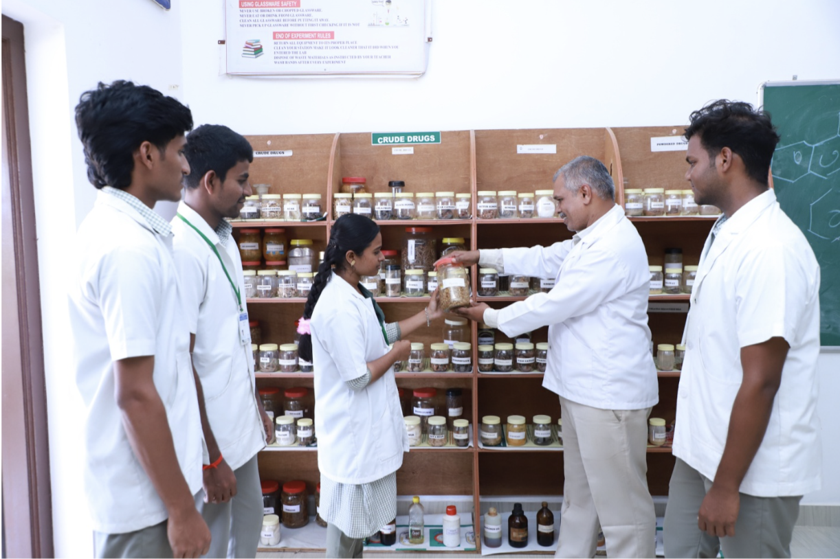 - The Pharmacognosy laboratory has museum of raw and natural medicinal plants and herbs for view and learning of the students. Standardization, preparation and formulation of new natural medicines involving new breeds of plants and herbs are undertaken by the Pharmacognosy lab.